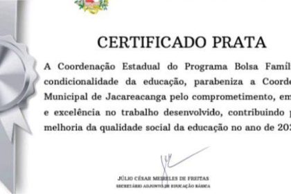 Reconhecimento do resultado do trabalho sério, responsável e comprometido da Coordenação Municipal…
