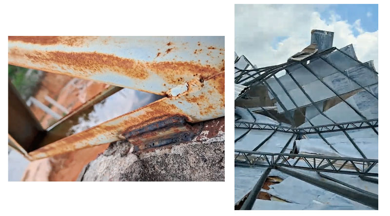 Uma visita às obras de construção da Escola de Ensino Médio de Moraes Almeida constatou que a estrutura está totalmente comprometida. Foram encontrados ferros enferrujados e as amarrações da estrutura metálica (cobertura) apresentavam total falta de segurança.