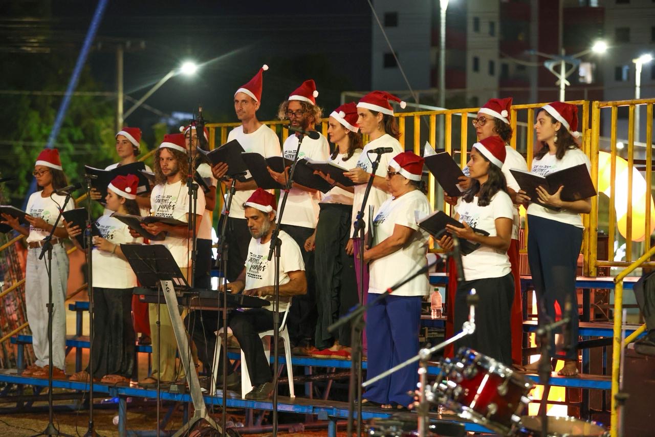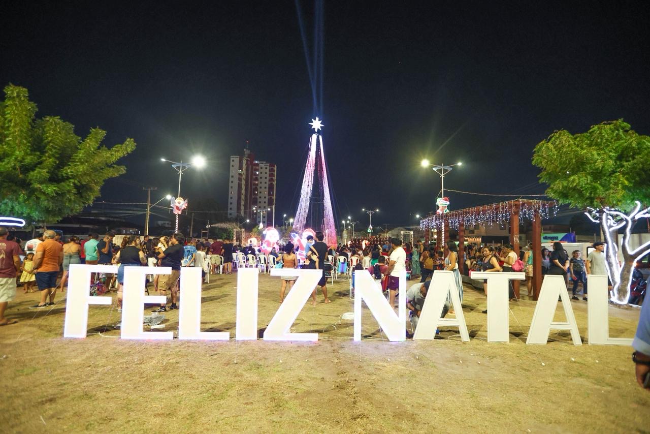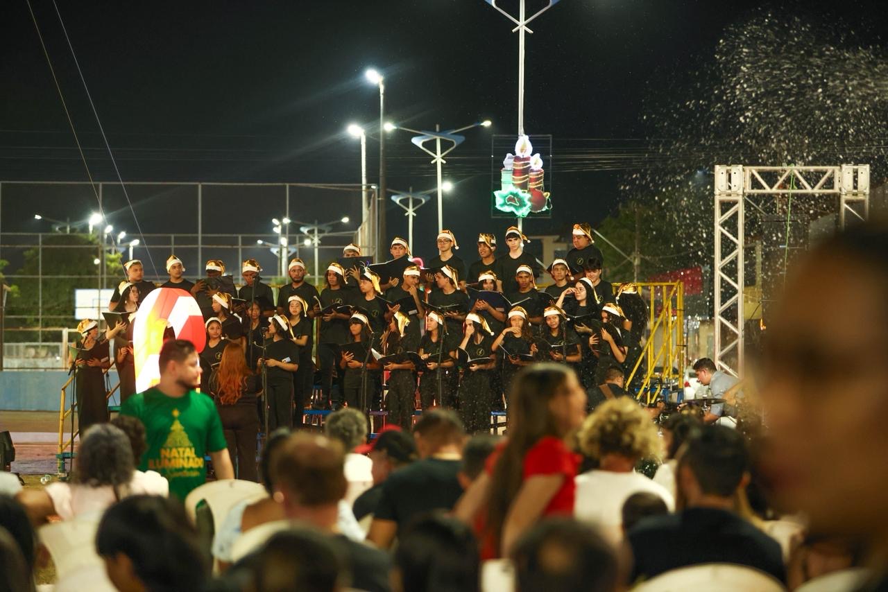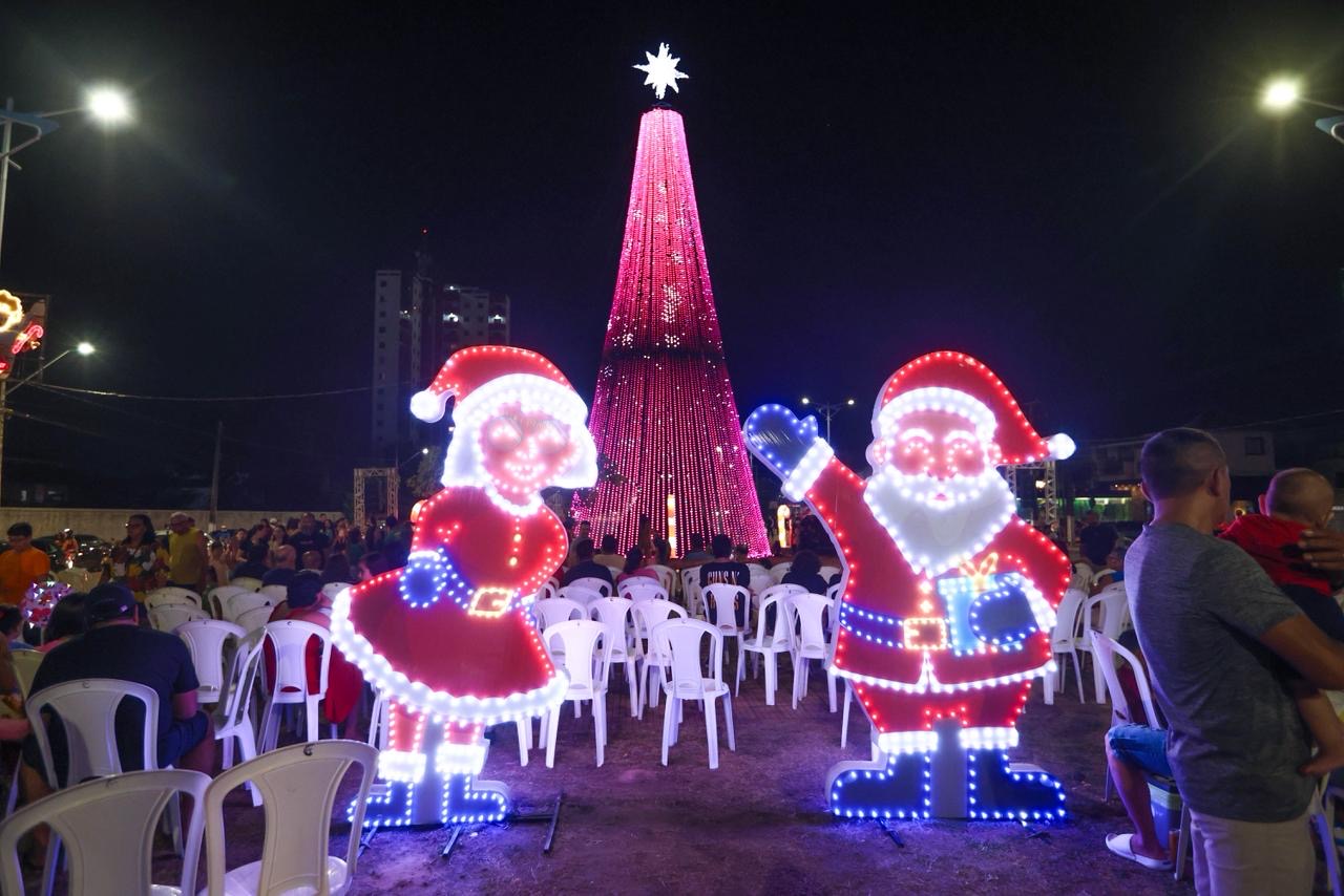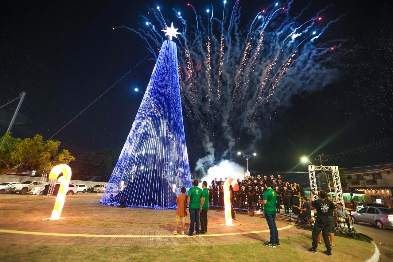 As luzes da maior árvore de Natal de Santarém foram acesas na noite de sábado (13). Com 22,5 metros de altura e milhares de LEDs que mudam de cor constantemente, a estrutura foi instalada na rotatória da Anysio Chaves com a Travessa Cravo. O espetáculo contou com apresentações dos corais da Escola de Ensino Técnico Belo de Carvalho e do grupo Cantemos Juntos, de Alter do Chão, reunindo um grande público. A iniciativa da Prefeitura, por meio da Secretaria de Urbanismo e Serviços Públicos (Semurb), integra mais uma ação do Natal Iluminado, que segue até 6 de janeiro.