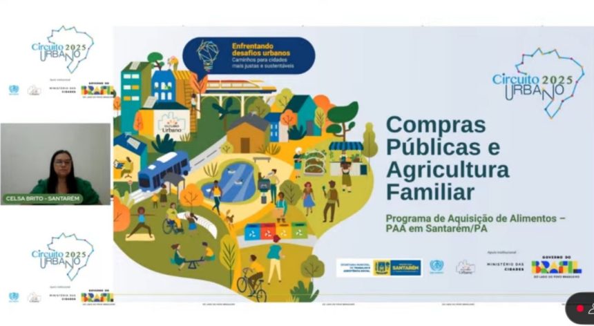 O município de Santarém foi destaque, na quarta-feira (9), durante a mesa-redonda virtual “Alimentar a Cidade: Caminhos para Políticas Urbanas Sustentáveis”, promovida pela ONU-Habitat e transmitida ao vivo pelo canal do Circuito Urbano 2025 no YouTube.