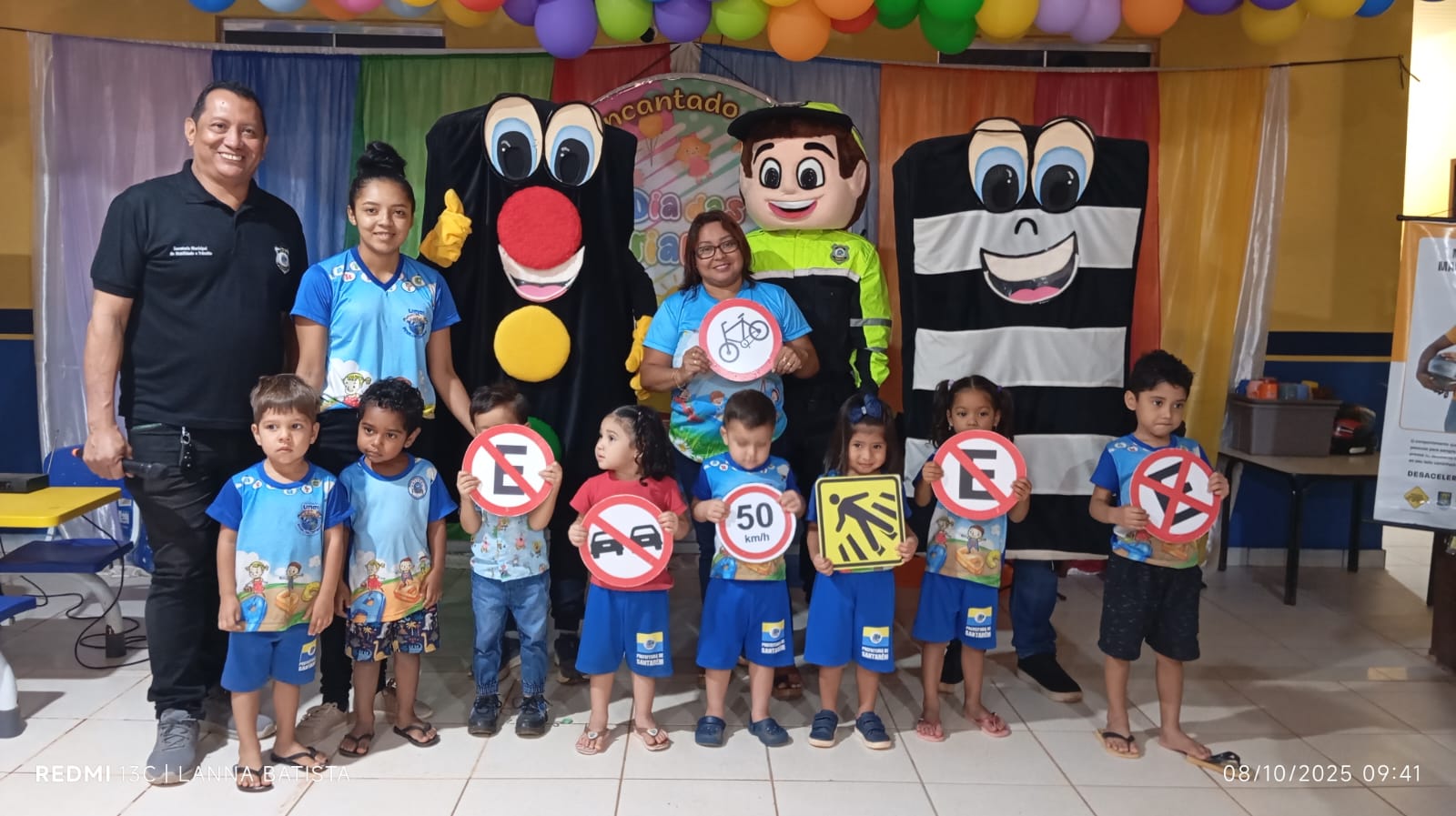 As atividades da Semana da Criança: Brincando e Aprendendo para o Trânsito seguem com outras ações educativas em unidades de ensino infantil, sempre com o propósito de promover a conscientização e a segurança viária por meio da educação e do diálogo com a comunidade escolar.