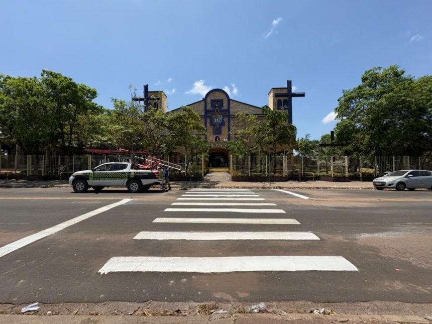 A Prefeitura de Santarém, por meio da Secretaria Municipal de Mobilidade e Trânsito (SMT), segue com os trabalhos de melhoria da sinalização viária em diferentes áreas da cidade, com o objetivo de garantir mais segurança e fluidez no tráfego de veículos e pedestres. As ações desta semana contemplam a implantação de sinalização vertical de ponto de parada de ônibus na Avenida Cuiabá, no bairro Cambuquira; a instalação de placas de regulamentação de caminhão frigorífico na Avenida Tapajós, em frente ao Mercado do Peixe; além da implantação de sinalização de vagas de estacionamento na UBS Vitória Régia, no bairro Vitória Régia, e a revitalização da faixa de travessia de pedestres na Avenida Plácido de Castro, em frente à Igreja São Francisco.