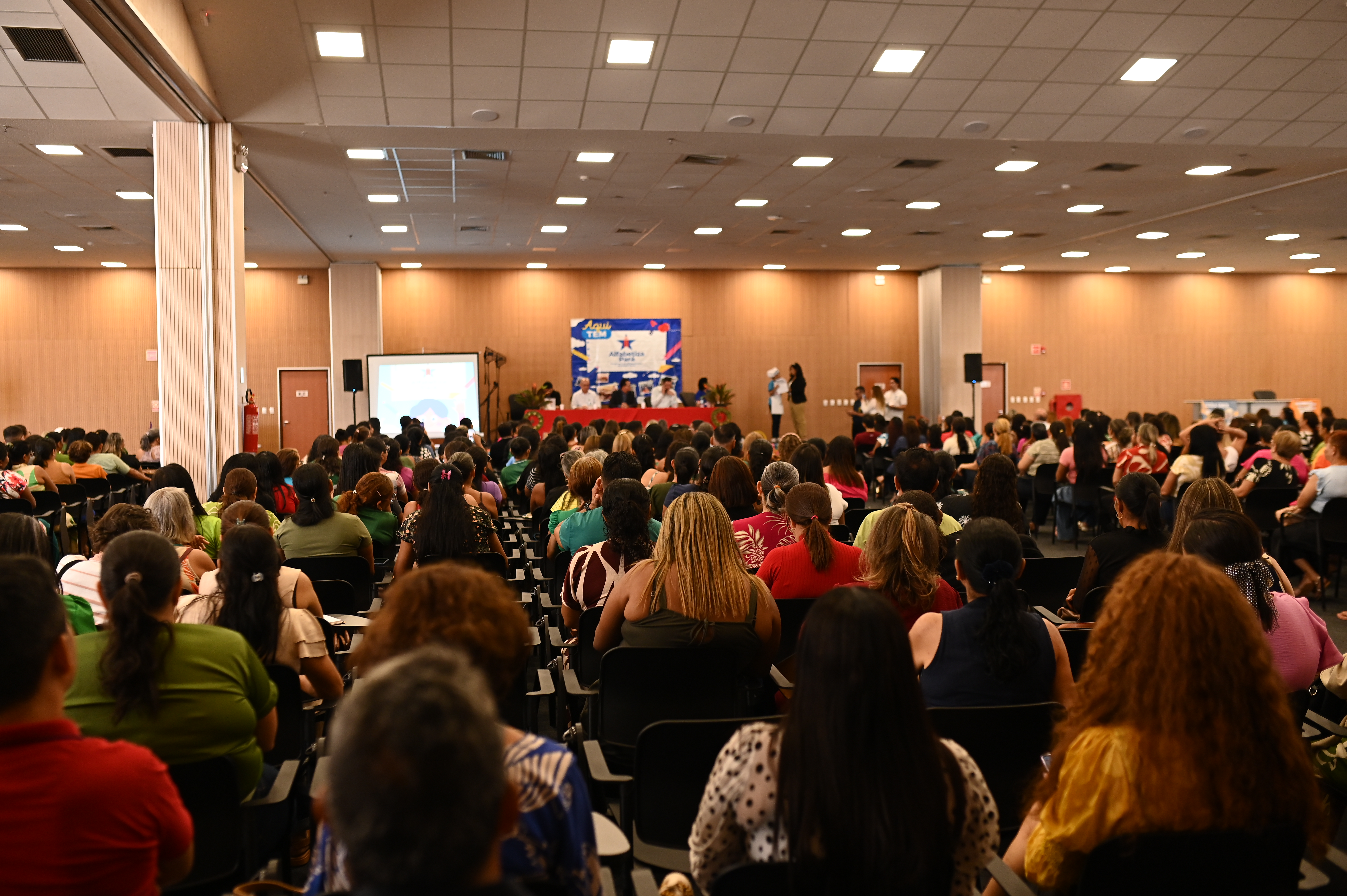 O evento, realizado no Centro de Convenções Sebastião Tapajós, reuniu cerca de 1.400 professores — de 1º e 2º ano (terça-feira) e de 3º ao 5º ano (quarta-feira) — das regiões de rios, planalto, zona urbana, comunidades indígenas e quilombolas, durante dois dias de programação. O prefeito Zé Maria Tapajós prestigiou a abertura, acompanhado do vice-prefeito Carlos Martins, do secretário municipal de Educação, Nilton Araujo, e da articuladora municipal de Ensino, Patrícia Freitas.