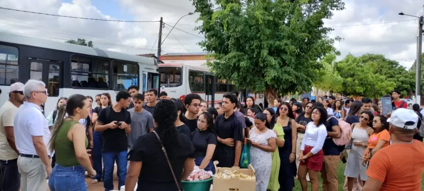 O secretário de Educação, Izailton Sousa, participa da entrega de lanches aos estudantes de Mojuí dos Campos antes do embarque para Santarém, garantindo apoio e incentivo na realização do Enem 2025. (Foto: Burlamaqui)