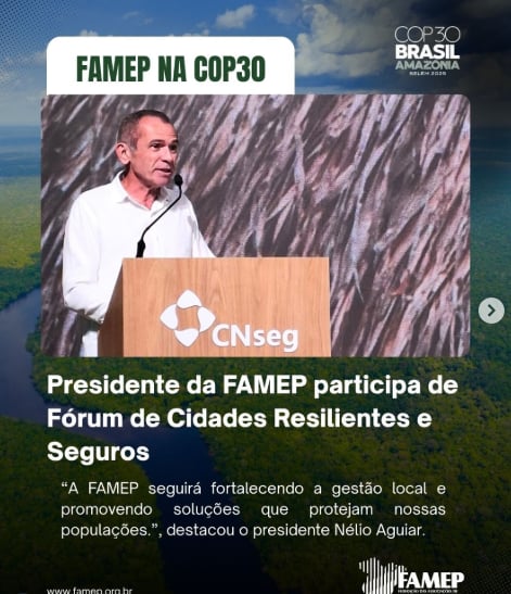 O presidente da FAMEP, Nélio Aguiar, participou do Fórum de Cidades Resilientes e Seguros, que reuniu especialistas, autoridades municipais e o setor segurador para debater adaptação, gestão de riscos e proteção das comunidades frente aos eventos climáticos extremos.
