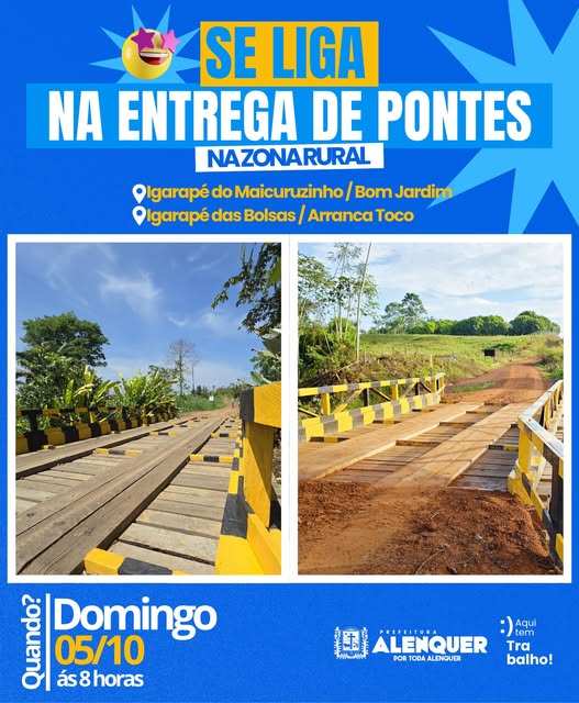 A Prefeitura de Alenquer realizará no domingo, dia 05 de outubro, a entrega de duas importantes obras, na zona rural do Município.