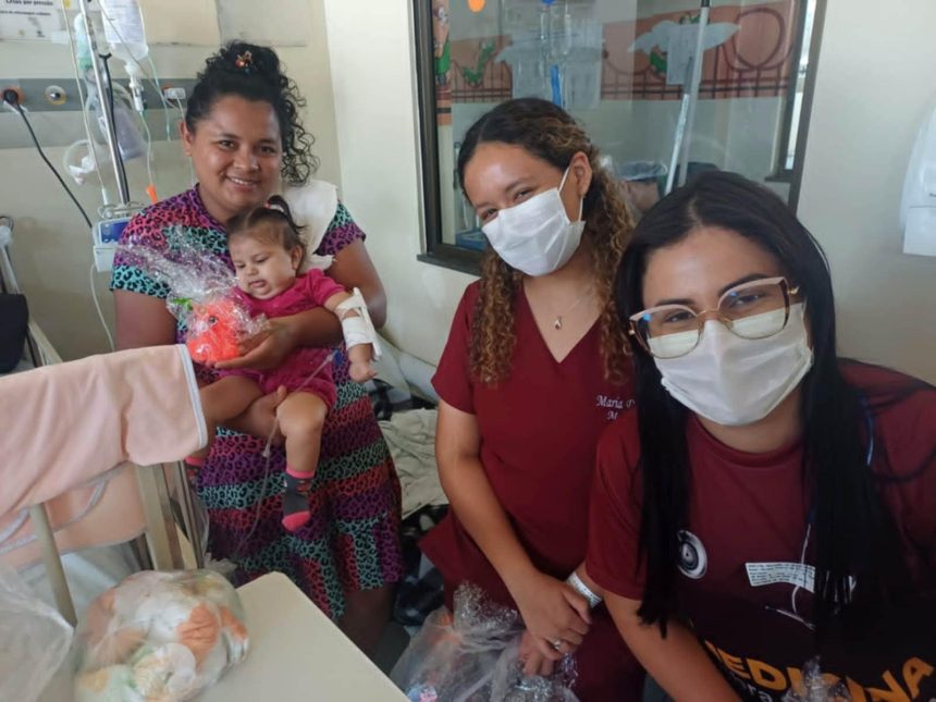 Crianças internadas no setor de pediatria do Hospital Regional do Baixo Amazonas (HRBA) receberam doações de brinquedos de estudantes do terceiro semestre da Faculdade Ulbra Medicina Santarém. A iniciativa faz parte do projeto de extensão da disciplina Práticas Profissionais de Educação em Saúde, ministrada pela professora Andréa Costa, e destaca o tema “Cuidando de quem cuida”.
