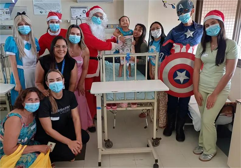 “Nós viemos trazer alegria e muito amor em forma de brinquedos. O sorriso das crianças é a melhor forma de ver Jesus em nossas vidas. Desejamos um feliz Natal e um ano novo cheio de saúde e cura para todos os nós, para todas as crianças. Gratidão ao hospital por nos abrir as portas e que em 2026, a gente faça mais e mais ações como essa”, afirmou a coordenadora do projeto Amigos dos Anjos de Deus, Aldenora Andrade.